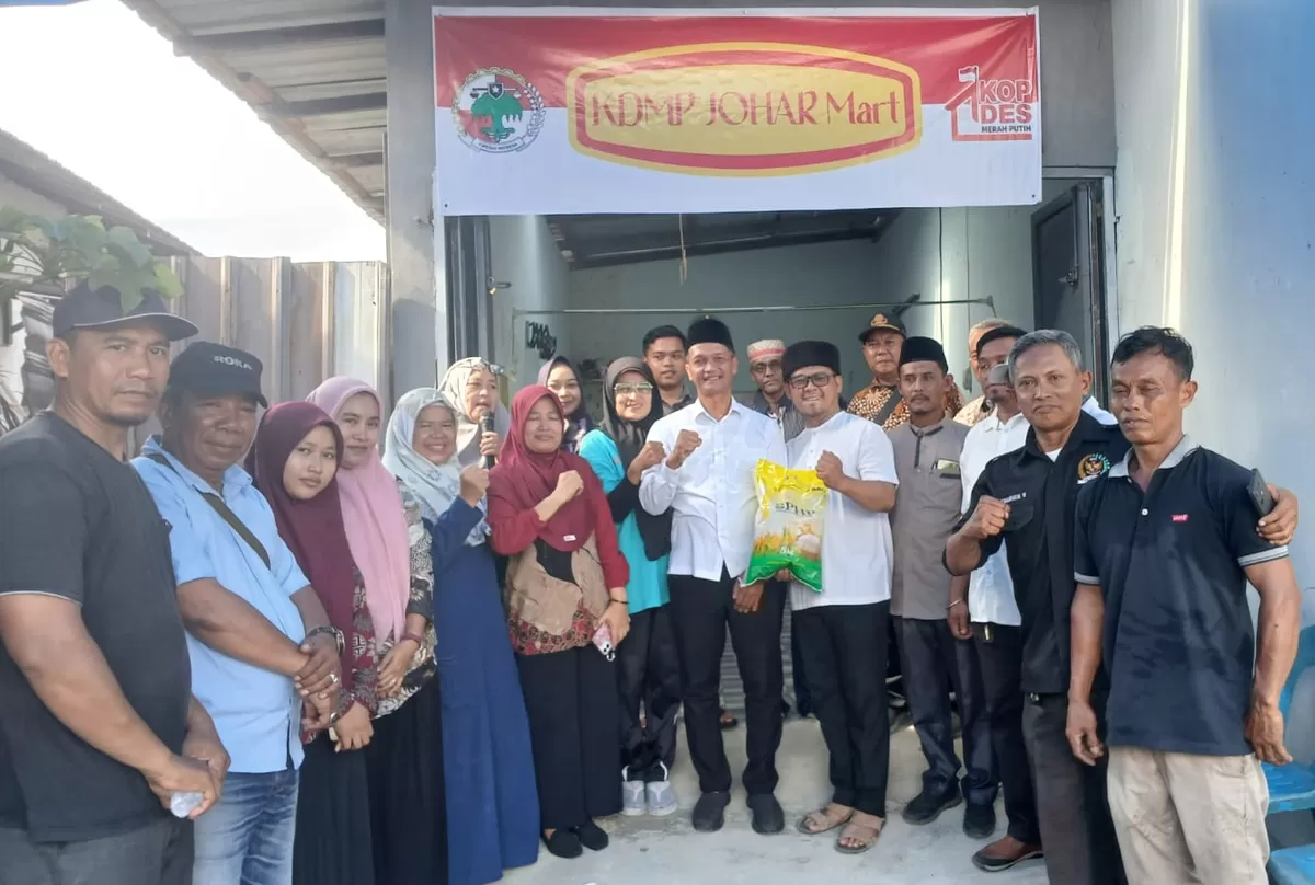 LAUNCHING: Pengurus Koperasi Desa Merah Putih (KDMP) Pematang Johar, Kepala Desa dan jajaran serta masyarakat, foto bersama usai lauching Johar mart.(Foto: Agus/Topikseru)