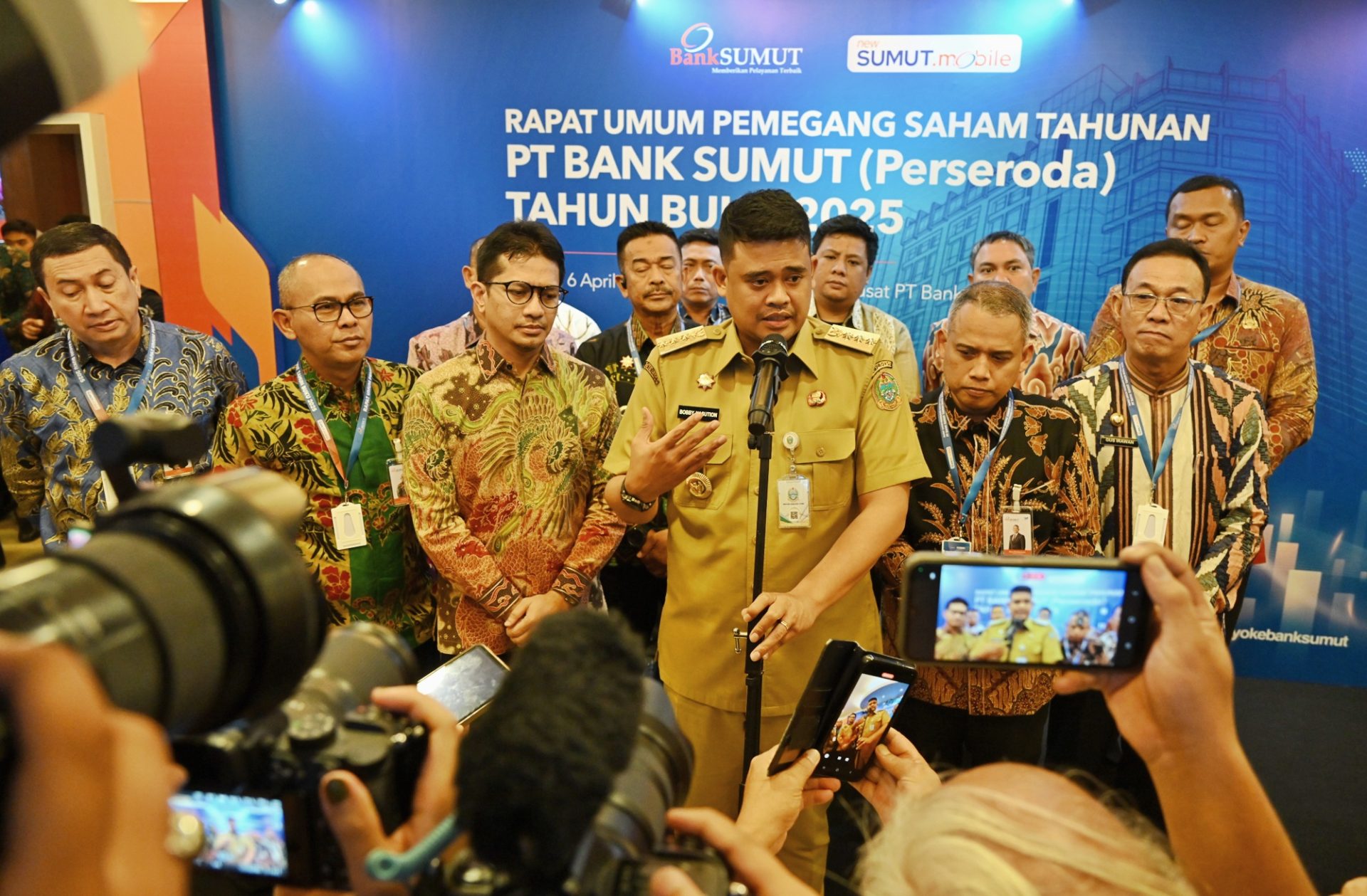“Aturan OJK di 2029 untuk bank itu minimal Rp6 triliun, Rp6 triliun itu sudah masuk KBMI 2, Jadi, ini sebagai pemegang saham, pemerintah daerah sepakat, kita harus mengejar modal Rp6 triliun,” kata Bobby Nasution usai RUPS Tahunan Tahun Buku 2025 PT Bank Sumut di Lantai 10 Kantor Pusat Bank Sumut, Jalan Imam Bonjol Nomor 18, Medan, Senin (6/4/2026).