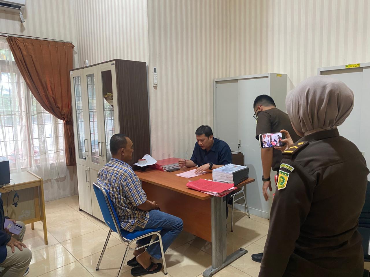Mantan Kepala Seksi Keuangan Polres Padangsidempuan Risdianto Lubis saat proses pemeriksaan dan penyerahan ke Jaksa.(Foto: Istimewa/Topikseru)