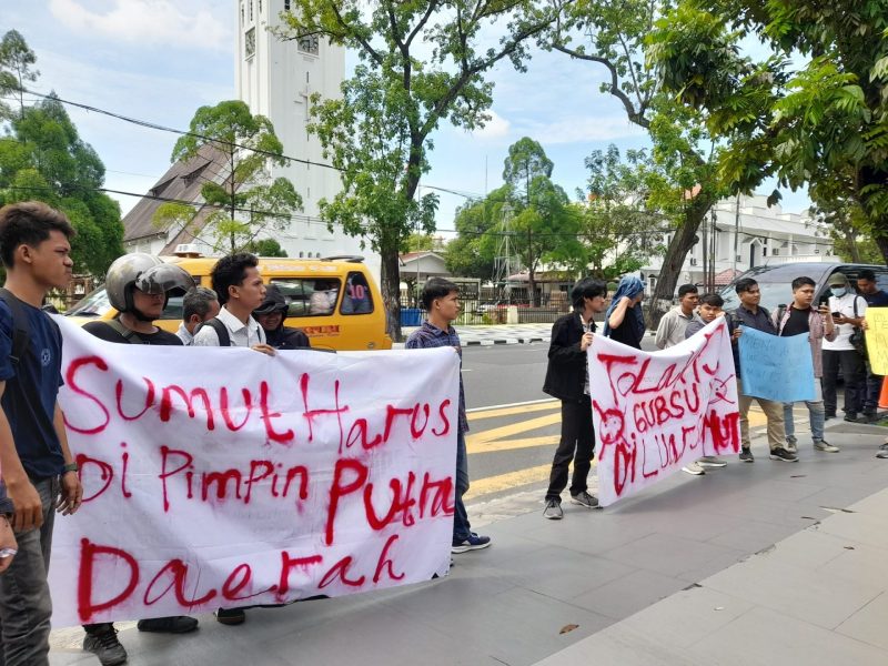 TOPIKSERU.COM, MEDAN – Sejumlah mahasiswa menggelar unjuk rasa di depan Kantor Gubernur Sumatera Utara (Sumut), menolak penunjukan Agus Fatoni sebagai Penjabat (Pj) Gubernur Sumatera Utara, Selasa (25/6).