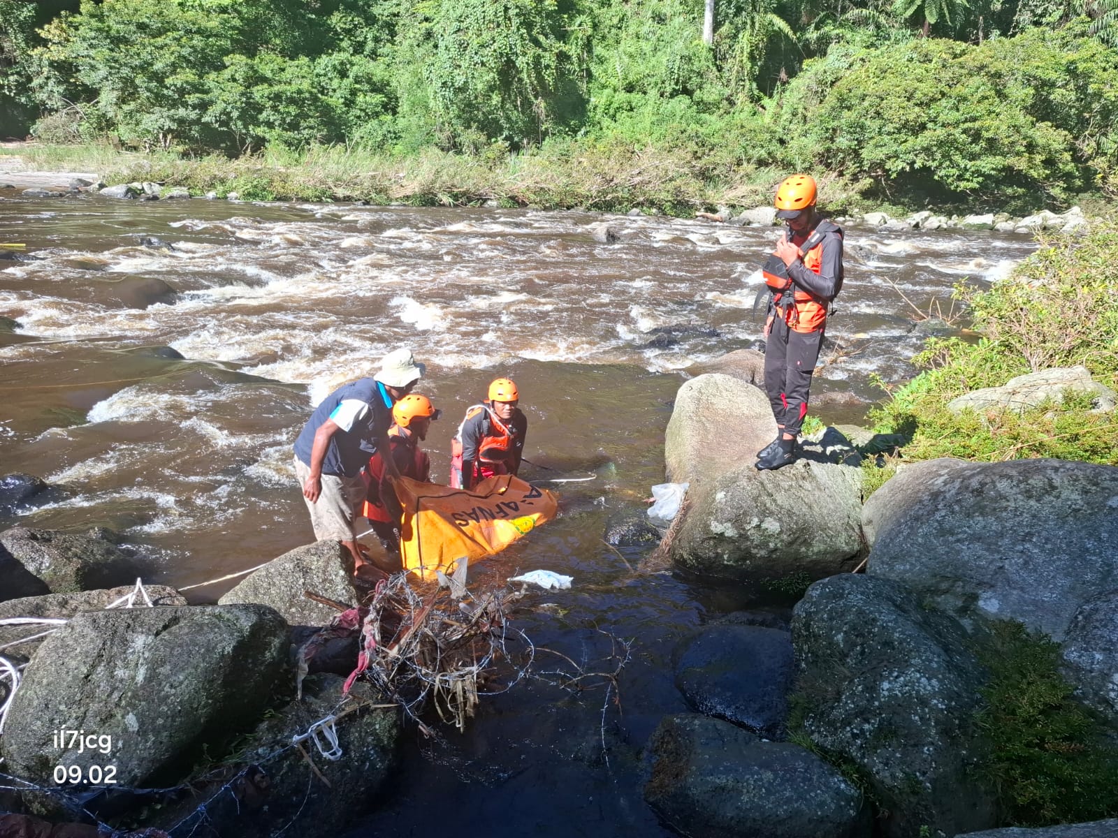 “Pada pukul 08.56 WIB, tim SAR gabungan berhasil menemukan korban dalam kondisi meninggal dunia. Korban ditemukan mengapung di aliran sungai berjarak sekitar dua  kilometer arah barat daya dari lokasi kejadian perkara (LKP) tersangkut di jaring yang dipasang tim  gabungan,” ujar Manullang.